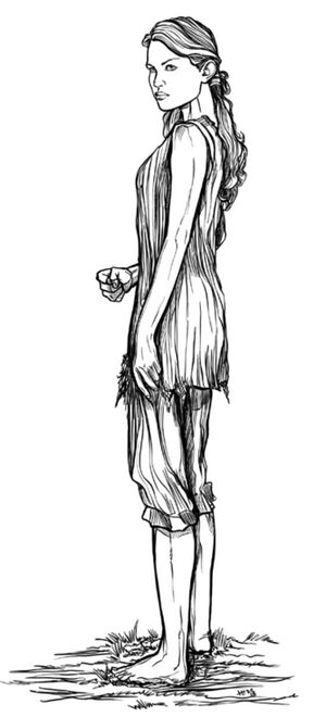 Ellie is a slender, pale, blonde teenage girl in dirt-covered rags and with a hair-ribbon. Kadra Tourmaline suspects her of being Merriath the Quick - her former mentor and powerful sorceress who has gone mad and is looking to drink the blood of all of her students to become a dragon herself.