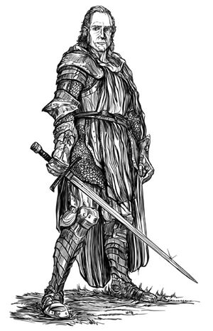 Sir Brenarform Steelcrest is a stern but fair leader of the order "Knights of the Last Bastion". He hates the green skins with a passion, and provided the party with information on a secret entrance into Fort Frostfell, a place that the Knights had occupied some twenty years earlier before they moved to Safeharbour so they would be less remote and be able to recruit new members.